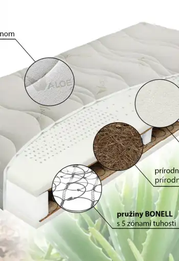 - Vrchný profil: komfortná, priedušná Hydrolatexová doska (biela)