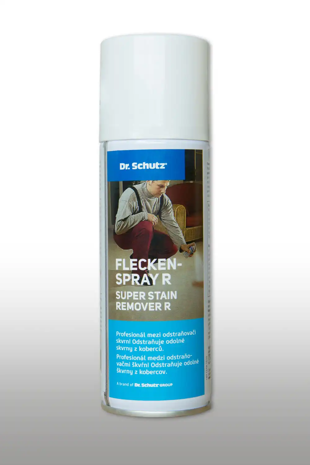 Prípravok na odstraňovanie obzvlášť tvrdošijných, vodou nerozpustných škvŕn na farebne stále textilné podlahové krytiny, čalúnenie a textílie CC-Fleckenspray R. Odstraňuje rýchlo a dôkladne lepidlá, zvyšky farieb, lak, fixky, lak na nechty, olej, tuky, asfalt a mnohé ďalšie.
