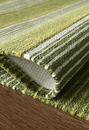Koberec LAOS sa vyrába v Egypte, kombináciou jemného polyesteru a viskózy (umelý hodváb). Vďaka svojmu zloženiu a vzhľadu má viacúčelové využitie. Môžeme ho použiť ako predložku v kúpeľni či pri kuchynskej linke alebo ako koberček na chodbe. Koberec je veľmi príjemný na dotyk, má antibakteriálny povrch a protišmykovú rubovú stranu. Ľahko sa udržiava, je ručne prateľný. V ponuke v rôznych farebných prevedeniach.