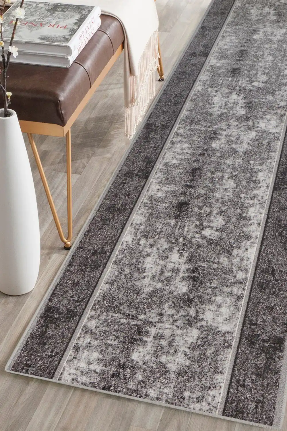 Behúň Stark je polyamidový uzlíkový koberec typu potlač, vyrábaný v dvoch elegantných farebných odtieňoch. Koberec má gélový podklad, ktorý bráni šmýkaniu sa po podlahe. Polyamidové vlákna sú odolné voči slnečnému žiareniu a nečistotám. Zaujímavý vzor koberca ozvláštni a zútulní Váš interiér. Behúň Stark je vhodný do náročnejších bytových priestorov akými sú chodba, schody a pod.
