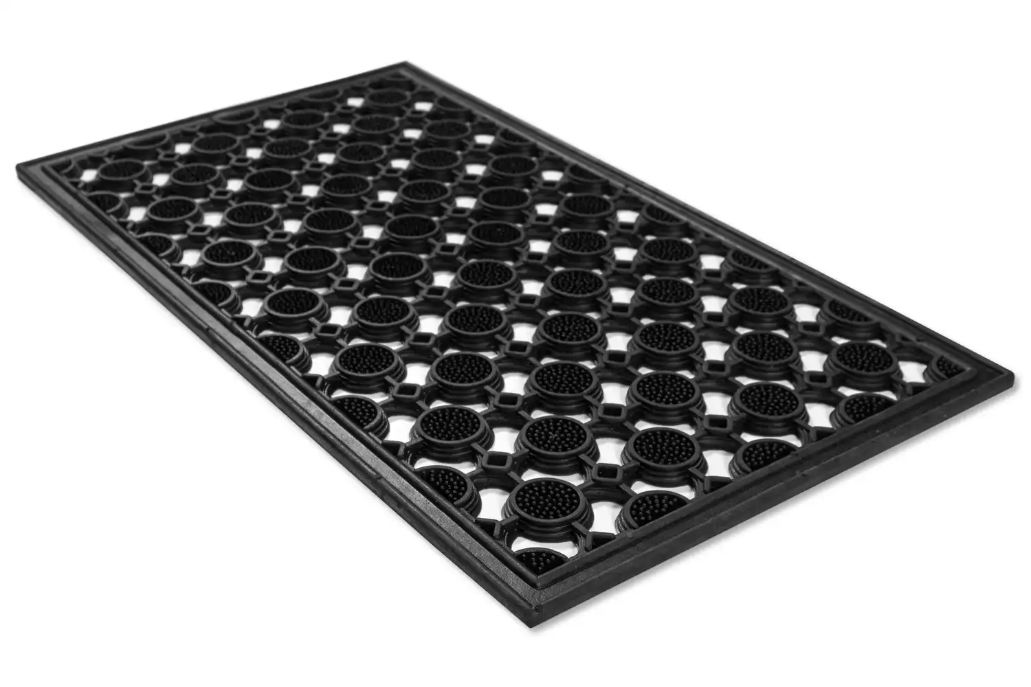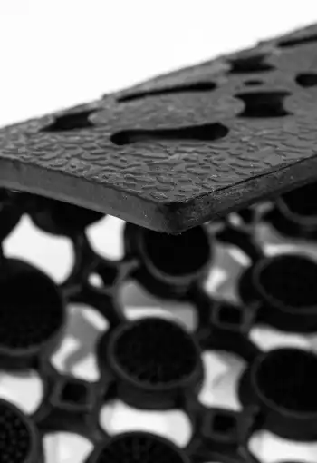 Rohož je vyrobená z gumy, ktorá účinne zachytáva hrubé nečistoty. Môžete ju využiť v interiéri aj v exteriéri, pretože je odolná voči poveternostným podmienkam. Vďaka jej materiálu je protišmyková, ľahko sa čistí a má dlhú životnosť.