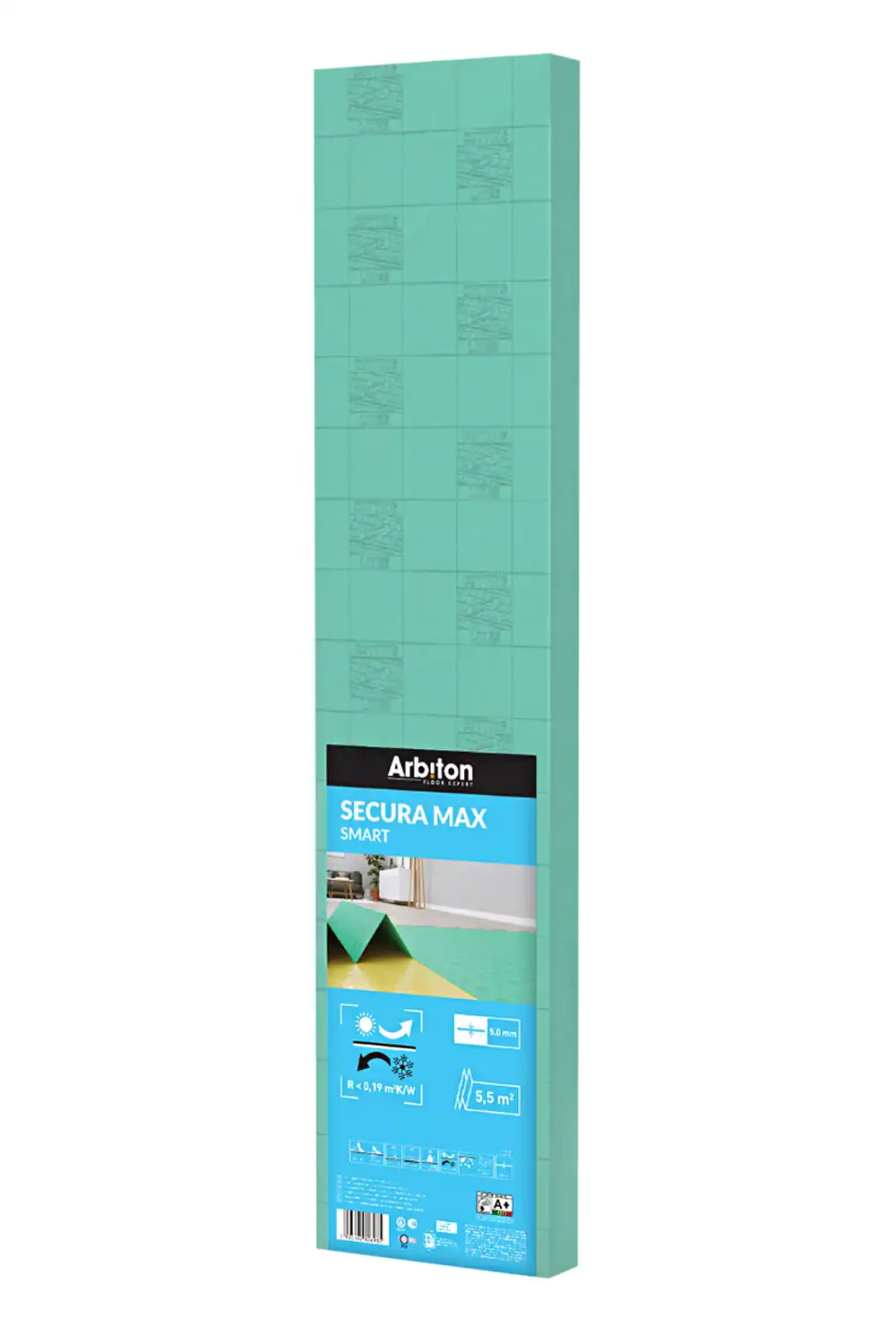 Podložka pod plávajúcu podlahu Arbiton Secura Max Smart je vyrobená z extrudovaného polystyrénu v tvare harmoniky s dobrou tepelnou izoláciou a vysokou tlakovou stabilitou. Je odolná voči vlhku, zaťaženiu so zachovaním vlastností a zaisťuje tlmenie kročajového a akustického hluku. Táto podložka zaručuje dobrú cirkuláciu vzduchu a priľnavosť k podkladu. Práca s ňou je veľmi jednoduchá a rýchla.
