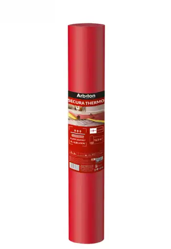 Podložka pod laminátovú plávajúcu podlahu Arbiton Secura Thermo je vyrobená z extrudovaného polystyrénu s hrúbkou 1,6 mm v rolke s dobrou tepelnou izoláciou a vysokou tlakovou stabilitou. Je odolná voči zaťaženiu so zachovaním vlastností a zaisťuje tlmenie kročajového a akustického hluku. Táto podložka je vhodná do miestností s podlahovým vykurovaním. Práca s ňou je veľmi jednoduchá a rýchla.