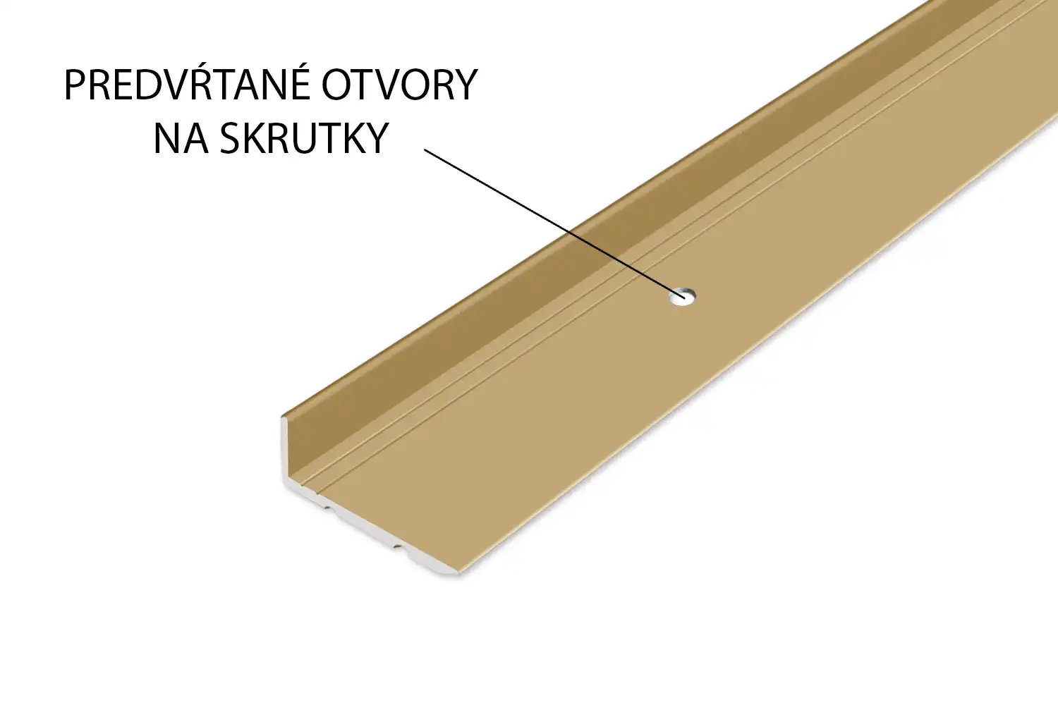 Vŕtaná schodová hrana je určená na ukončenie a ochranu hrán schodov. Má predvŕtané otvory na zapustené skrutky. V ponuke v dĺžke 90 cm a 270 cm.