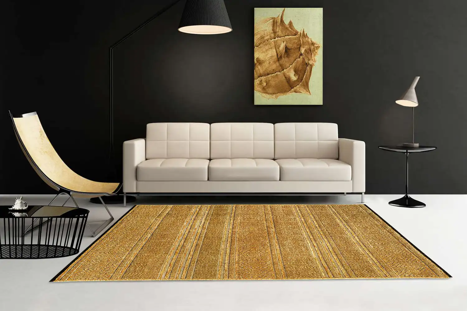 Nové koberce z kolekcie Saran urobia Váš interiér žiarivým a výnimočným. Koberec je vyrobený z juty, polyesteru a bavlny. Kombinácia týchto materiálov robí koberec nádherným, lesklým a veľmi príjemným na dotyk. Navyše jeho rubová strana je jemne pogumovaná čo ho robí protišmykovým. Koberec je po svojich dlhších stranách obšitý a na kratších stranách má decenté čierne strapce, ktoré dokonale dotvárajú jeho dizajn. Svoje miesto si nájde v ktorejkoľvek miestnosti.