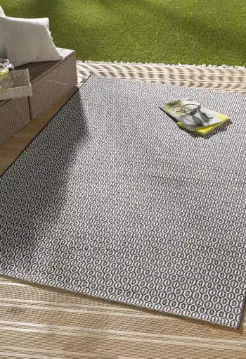 Koberce z kolekcie Northrugs Meadow od nemeckej spoločnosti Hanse Home sú vyrobené zo 100% polypropylénového vlákna. Moderný koberec s geometrickým vzorom je ľahký a nenáročný na údržbu. Koberec je vhodný ako na vnútorné, tak aj na vonkajšie použitie. Je skvelou voľbou pre balkóny, terasy či zimné záhrady.