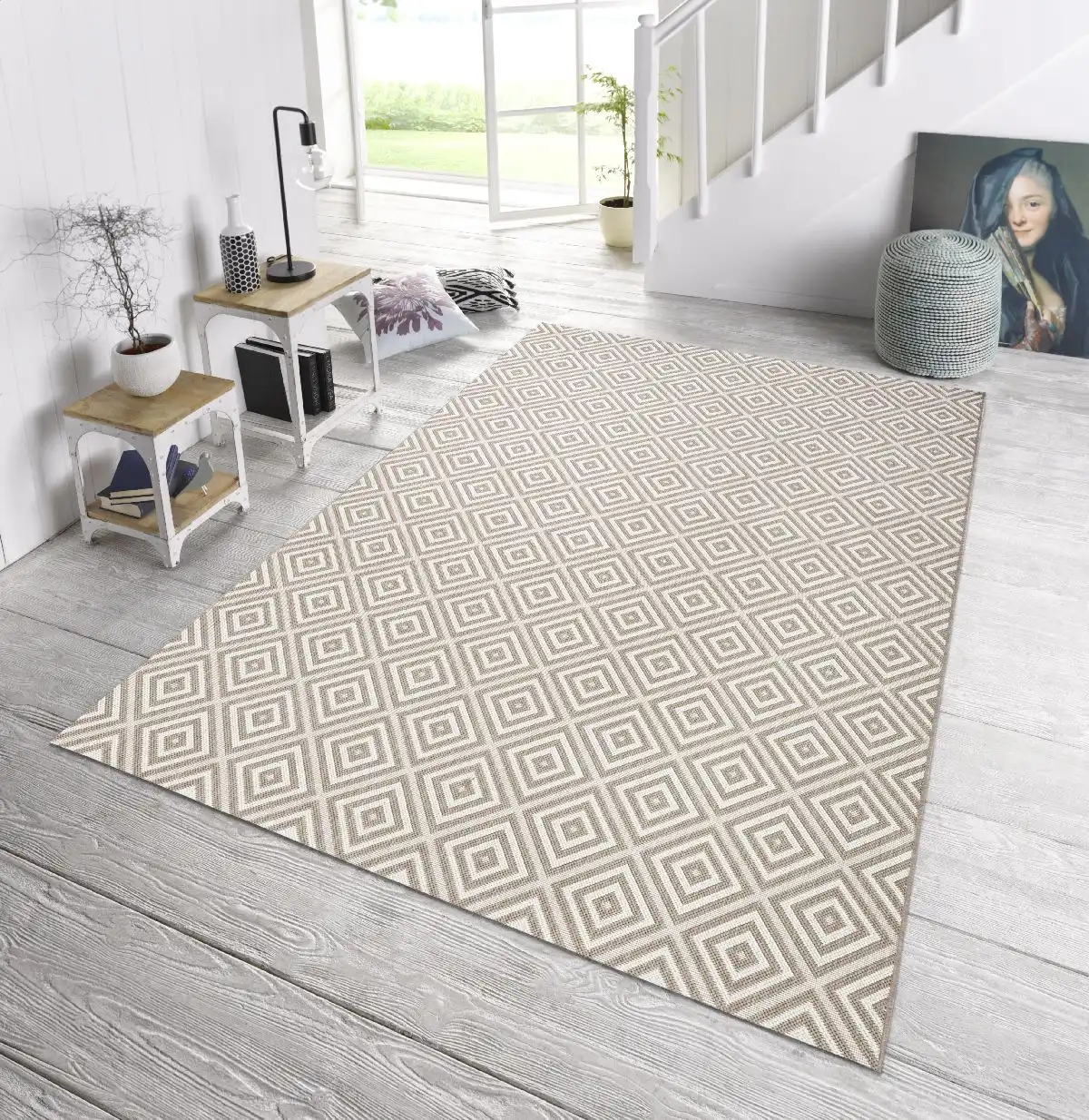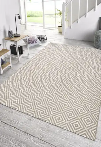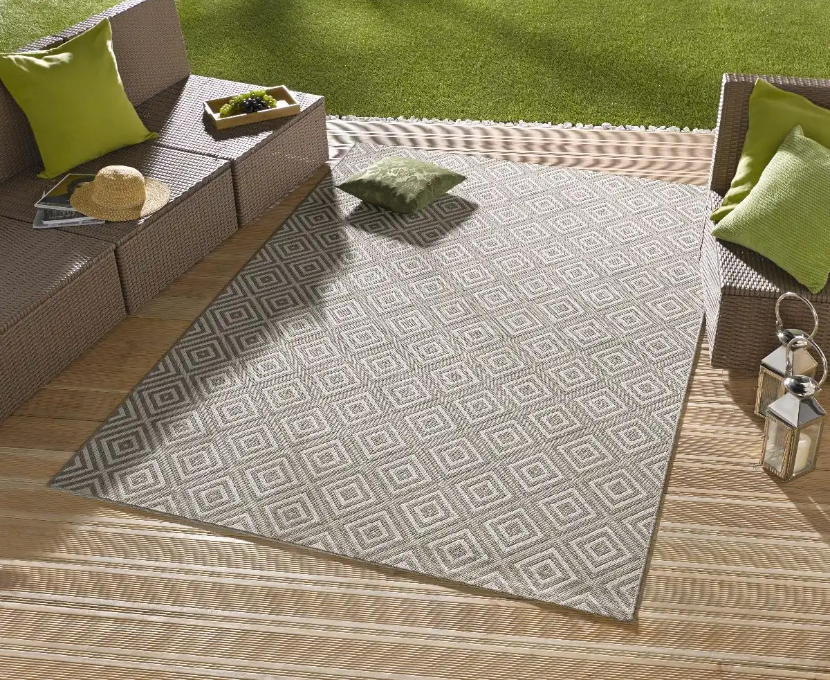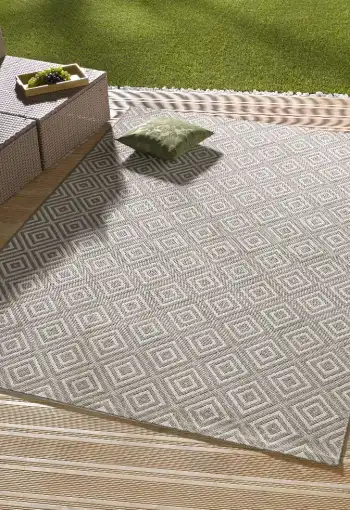 Koberce z kolekcie Northrugs Meadow od nemeckej spoločnosti Hanse Home sú vyrobené zo 100% polypropylénového vlákna. Moderný koberec s geometrickým vzorom je ľahký a nenáročný na údržbu. Koberec je vhodný ako na vnútorné, tak aj na vonkajšie použitie. Je skvelou voľbou pre balkóny, terasy či zimné záhrady.