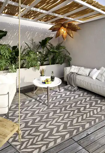 Kusové koberce Villeroy & Boch z kolekcie 1883 sú vyrobené zo 100% recyklovaného polyesteru. Kombináciou nízkého strihaného vlasu a uzlíka sa vytvára 3D vzor, ktorý dodáva kobercom hĺbku a dynamiku. Tieto moderné koberce sú nenáročné na údržbu a sú vhodné na vnútorné aj vonkajšie použitie. Sú skvelou voľbou pre balkóny, terasy či zimné záhrady. Koberce disponujú certifikátom OEKO-TEX Standard 100, ktorý zaručuje ekologický výrobný proces a absenciu škodlivých látok.