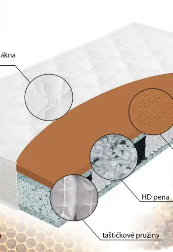- Jadro: taštičkové pružiny, 7 zón rozloženia hmotnosti