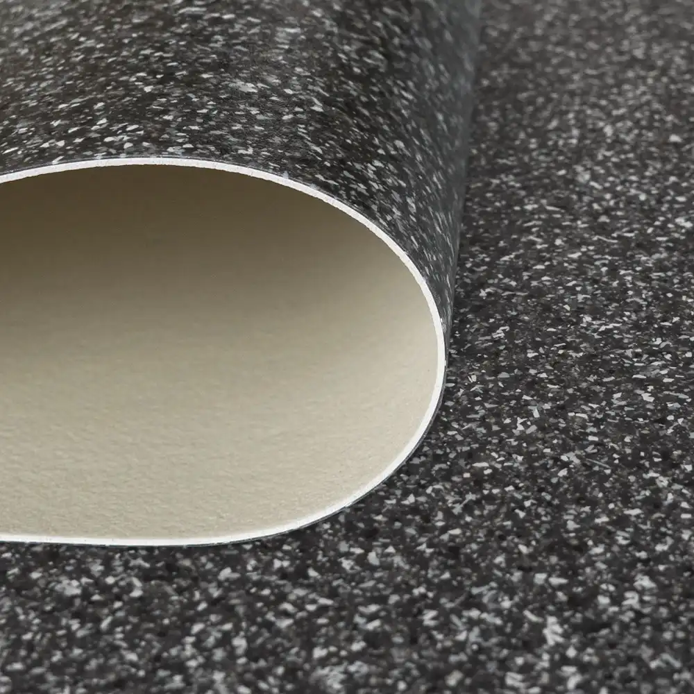 S triedou záťaže 34-42 je pripravená na poriadnu prevádzkovú záťaž v komerčných aj priemyselných priestoroch, kde sa to hemží pohybom a aktivitou od rána do večera. Má hrúbku 2 mm, takže sa len tak nepoddá, a nášľapná vrstva 0,7 mm odolá škrabancom, mechanickým útokom aj iným podlahovým katastrofám. Jej tzv. chipsový (prskaný vzor) prinesie do priestoru štýlový šmrnc, ktorý sadne do domácností aj kancelárií či dielní, kde vznikajú veľké veci. Navyše účinne tlmí kročajový aj akustický hluk, takže Vás nebude rušiť klopkanie podpätkov ani pracovný zhon. Údržba? Hračkou! Stačí bežné čistenie a podlaha sa tvári, že sa na nej nikdy nič nestalo. S hmotnosťou 2,05 kg/m² je stabilná, horľavosťou Bfl-s1 sa radí medzi bezpečné voľby a protišmykový povrch s triedou R10 znižuje riziko neplánovaných tanečných kreácií. Povrchová úprava PUR Hyperguard+ ešte pridáva bonusovú ochranu.