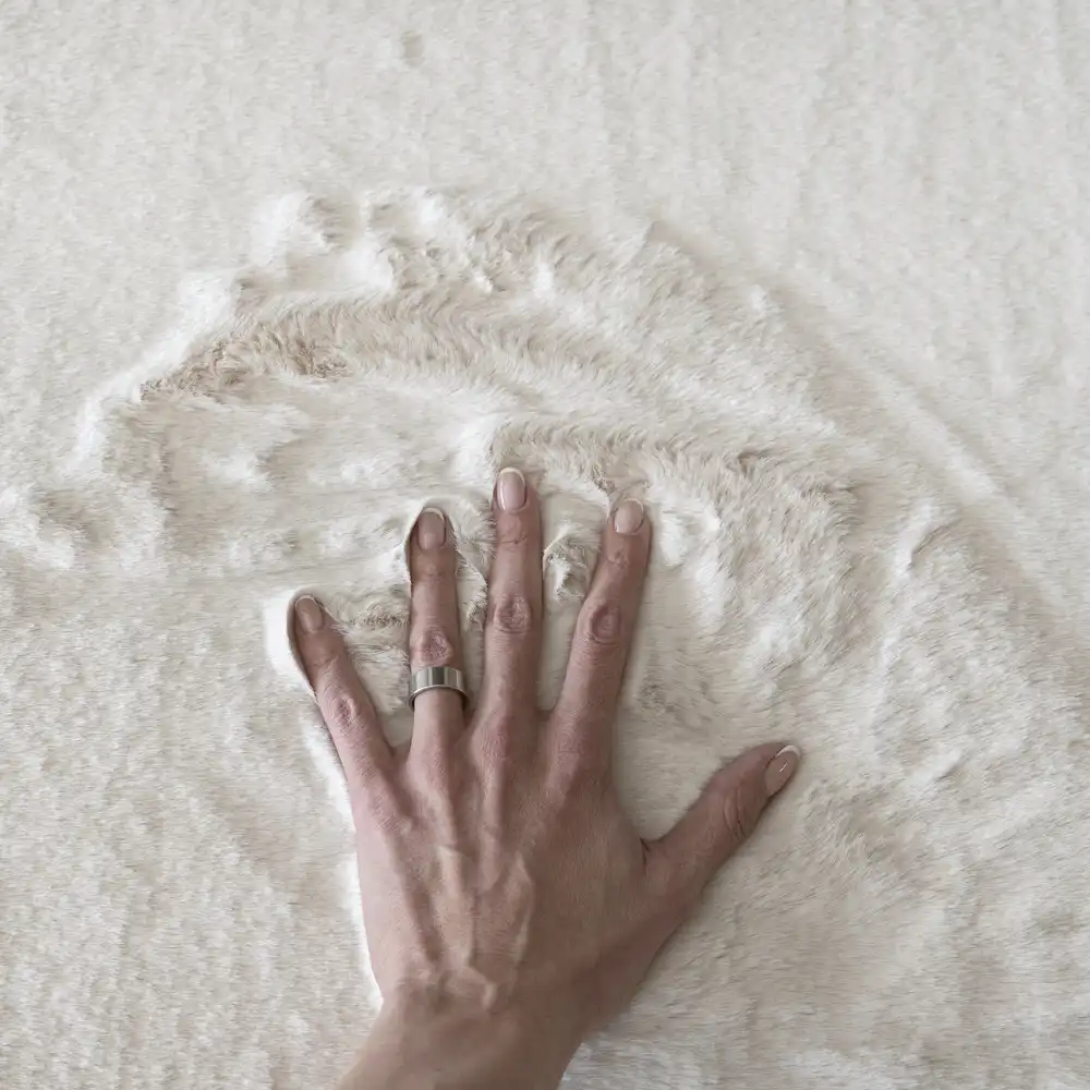 Koberec BUNNY sa môže pochváliť dlhým, extrémne mäkkým vlasom z kvalitného polyesteru. Ten nielenže vyzerá ako hrejivý kožúšok, ale poskytuje aj jedinečný komfort pri každom kroku. A ak patríte medzi ľudí, ktorí si radi „kreslia“ do jemného vlasu prstom, BUNNY Vám to dovolí s radosťou – jeho huňatá štruktúra perfektne zachytí každý Váš kreatívny ťah. Napriek svojmu luxusnému vzhľadu je údržba mimoriadne jednoduchá. Stačí pravidelné vysávanie a koberec bude stále pôsobiť ako nový. Jeho nadštandardná výška vlasu mu dodáva ikonickú mäkkosť a zaručuje ten správny „puf“ efekt pri došliapnutí. Navyše je zdravotne nezávadný, takže si jeho pohodlie môžete užívať bez starostí – bezpečný pre domácnosť, deti aj vaše bosé chodidlá.