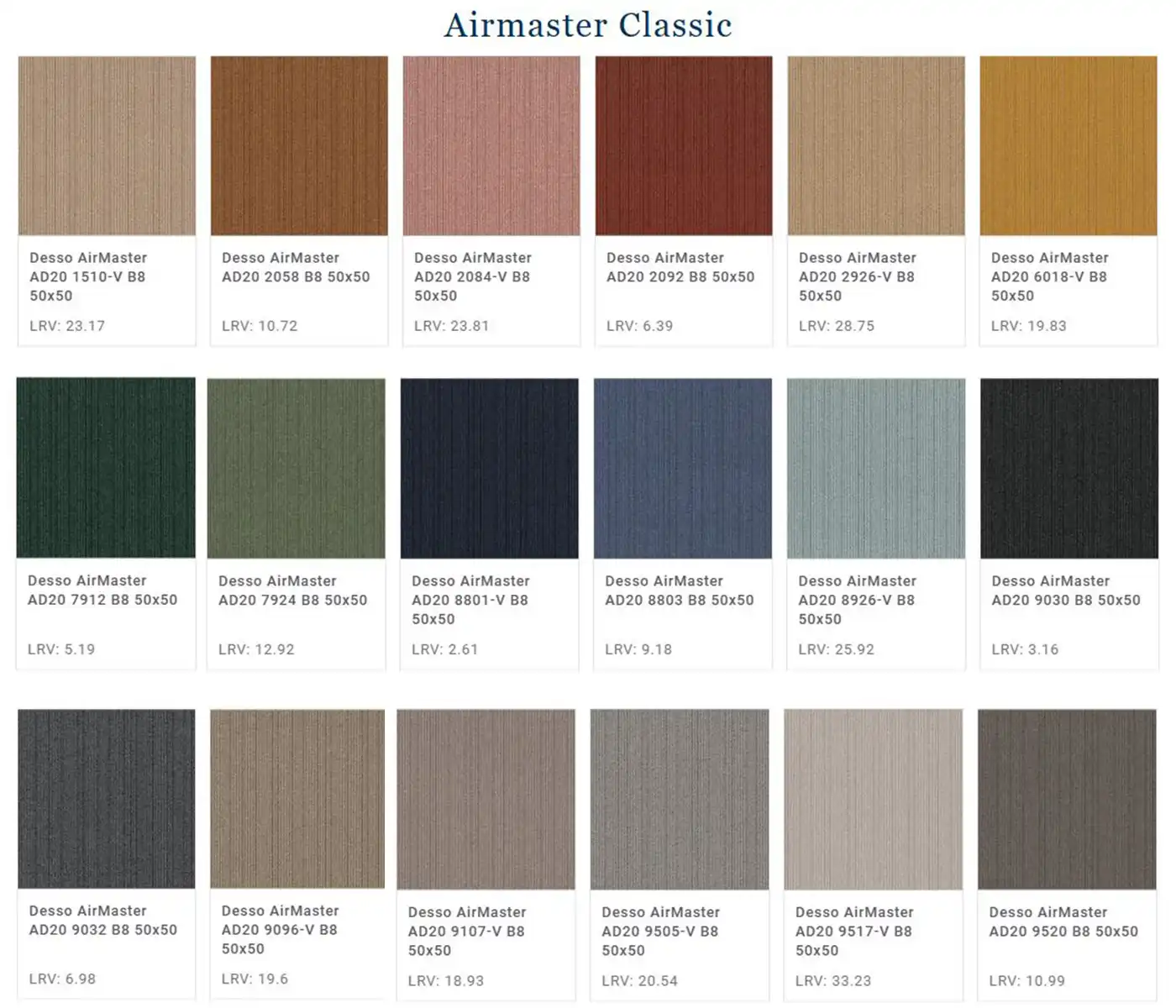 Kolekcia Airmaster Classic od značky Desso sa vyznačuje jemnou štruktúrou a širokou škálou farebných odtieňov, od neutrálnych sivých a béžových tónov až po výraznejšie farby. Vďaka tomu umožňuje vytvárať elegantné, jednotné podlahové plochy aj kombinácie vhodné pre zónovanie priestoru. Technológia Airmaster je navrhnutá na efektívne zachytávanie jemného prachu, čím prispieva k lepšej kvalite vzduchu v interiéri v porovnaní s bežnými podlahovými krytinami. Modulárny formát kobercových štvorcov uľahčuje pokládku, údržbu a prípadnú výmenu jednotlivých dielov. Vysoká odolnosť a dlhá životnosť robia z tejto kolekcie praktické riešenie aj pre priestory s vysokou záťažou.