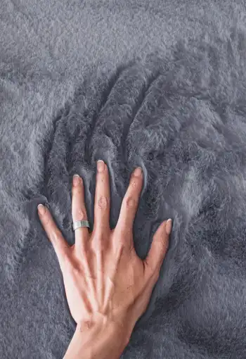 Koberec BUNNY sa môže pochváliť dlhým, extrémne mäkkým vlasom z kvalitného polyesteru. Ten nielenže vyzerá ako hrejivý kožúšok, ale poskytuje aj jedinečný komfort pri každom kroku. A ak patríte medzi ľudí, ktorí si radi „kreslia“ do jemného vlasu prstom, BUNNY Vám to dovolí s radosťou – jeho huňatá štruktúra perfektne zachytí každý Váš kreatívny ťah. Napriek svojmu luxusnému vzhľadu je údržba mimoriadne jednoduchá. Stačí pravidelné vysávanie a koberec bude stále pôsobiť ako nový. Jeho nadštandardná výška vlasu mu dodáva ikonickú mäkkosť a zaručuje ten správny „puf“ efekt pri došliapnutí. Navyše je zdravotne nezávadný, takže si jeho pohodlie môžete užívať bez starostí – bezpečný pre domácnosť, deti aj vaše bosé chodidlá.