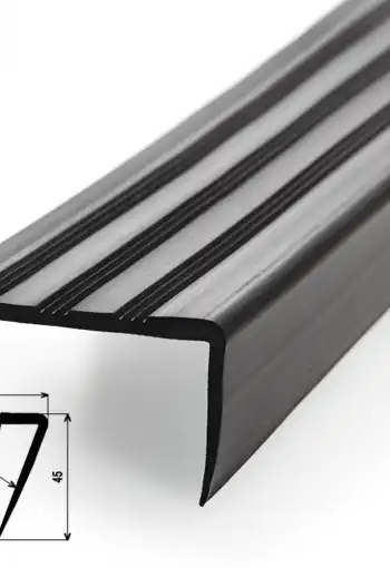 Schodová hrana z pružného plastu s profilovanou nášľapnou plochou. Hrana je určená pre interiérové schodisko ako doplnok podlahových krytín. Umožňuje dokonalé napojenie podlahoviny v detaile. Hrany sa k povrchu lepia, pre aplikácie sú najvhodnejšie betónové schody, ktoré musia byť rovné, pevné, bez trhlín a čisté.