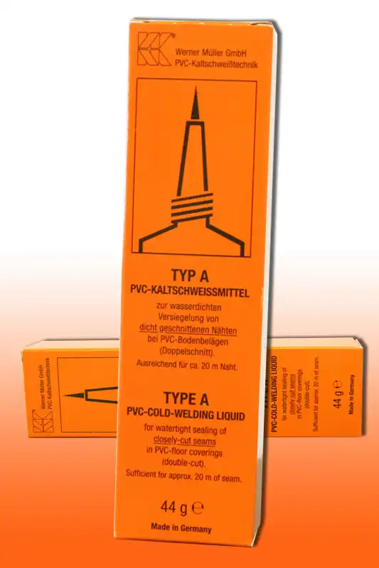 Lepidlo na zváranie od nemeckej firmy Werner Müller typ A je vhodné pre podlahové krytiny, tapety, profily a fólie z PVC. Typ A slúži k zváraniu PVC za studena a je určené predovšetkým na podlahové krytiny z PVC pre bezšpárový spoj (dvojítý rez). Hrot tuby umožňuje penetráciu tekutiny hlboko do spoja, čím sa spoj optimálne zvarí.