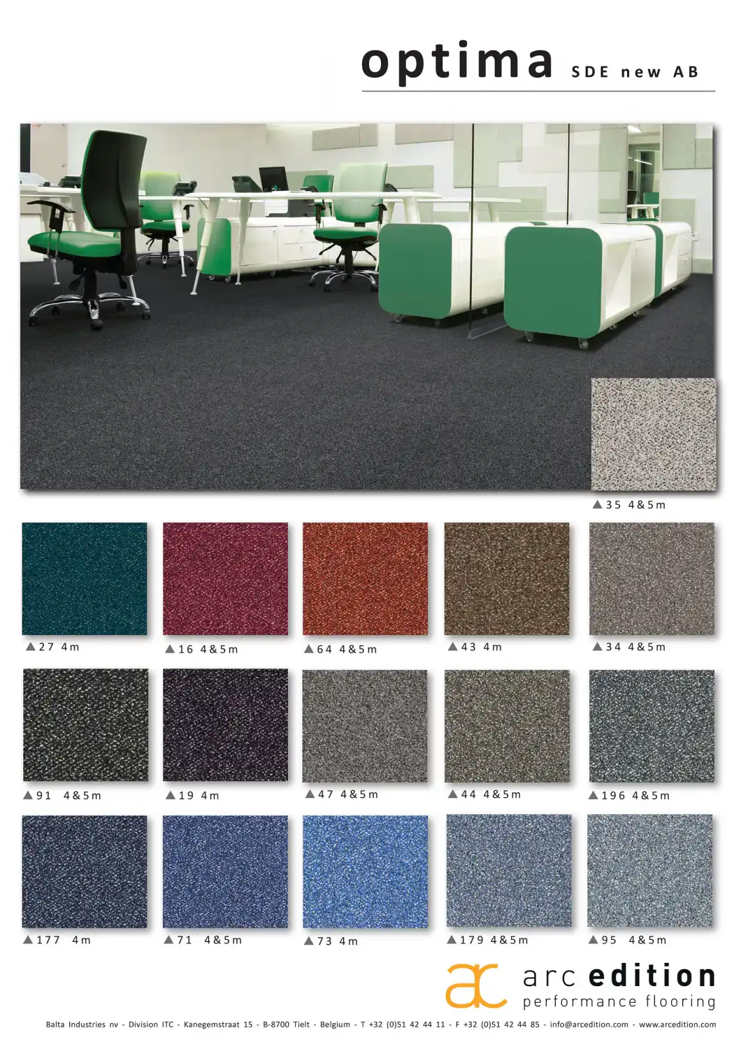 Reprezentatívny koberec Optima SDE New typu velúr, vhodný do pracovní, riaditeľní a iných reprezentatívnych miestností. Je určený do komerčných priestorov s bežným namáhaním. Je trvanlivý, má tvarovú pamäť a dobré akustické vlastnosti. Pri potrebe zariadiť viac kancelárií žiadajte veľkoobchodnú cenu.
