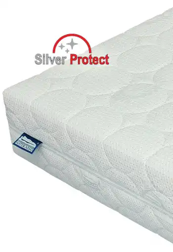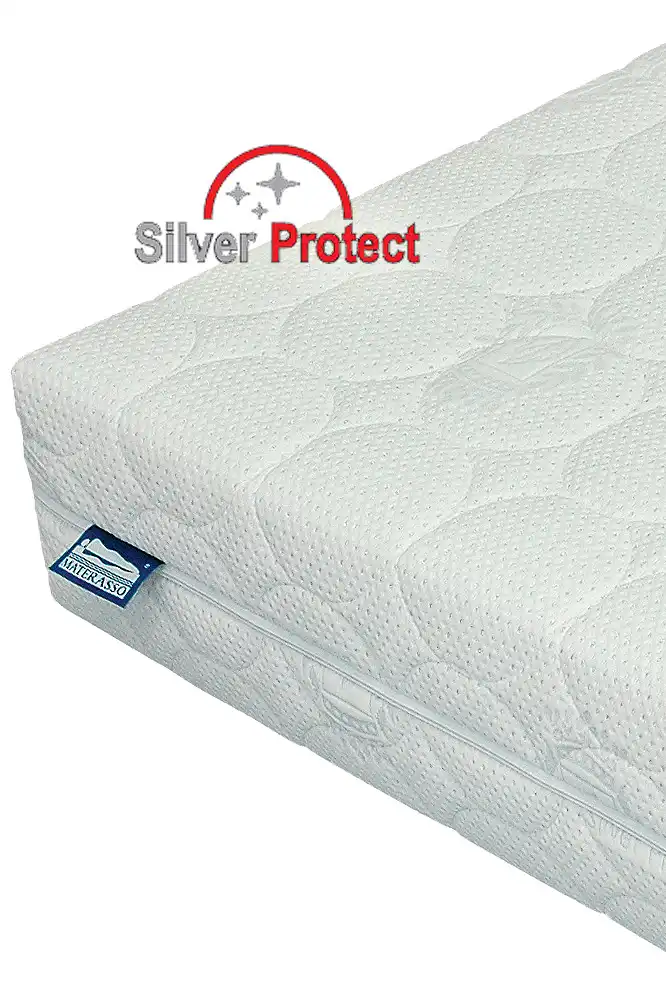 SILVER Poťahová látka so špeciálnou úpravou SILVER PROTECT, ktorá blokuje a redukuje tvorbu škodlivých zárodkov a baktérií na matracoch. Vysoko kvalitný, striebrom ionizovaný povrch poťahu má antimikrobiálny účinok. Už do dvoch hodín redukuje počet nebezpečných zárodkov a baktérií až o 90 %. Je preto zvlášť vhodný pre alergikov. Účinok antimikrobiálnej vrstvy bol testovaný a overený. Okrem vzniku plesní má aj schopnosť zabraňovať vytváraniu nepríjemných pachov. Pranie na 60 °C.