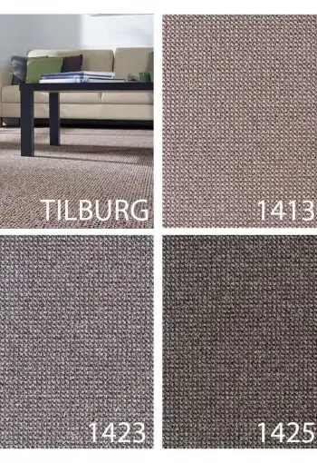 Koberec Tilburg/Titan je polypropylénový uzlíkový metrážny koberec, vyrábaný v rôznych farebných odtieňoch v prírodných farbách. Vďaka vyšším a nižším uzlíkom vytvára 3D efekt. Je vyrábaný s filcovým podkladom, ktorý zvyšuje tepelnoizolačné vlastnosti a predlžuje životnosť vlákna. Pôsobí elegantne a zútulní každý interiér. Svoje miesto si nájde predovšetkým v bytových priestoroch akými sú spálňa, obývačka alebo chodba.