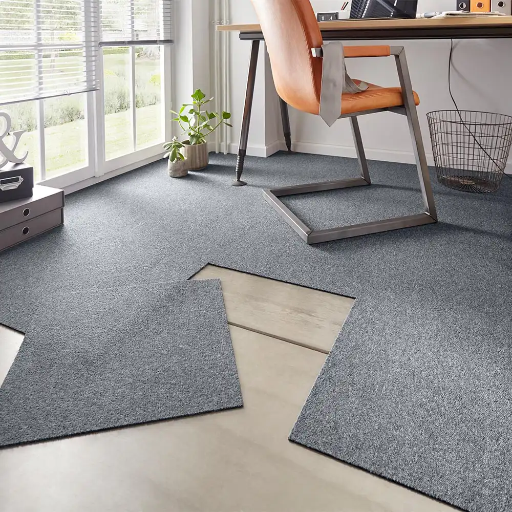 (Kobercové štvorce odporúčame celoplošne fixovať lepidlom, vďaka tomu je potom možná neskoršia výmena poškodených štvorcov alebo ich vybratie a opätovná pokládka.) -